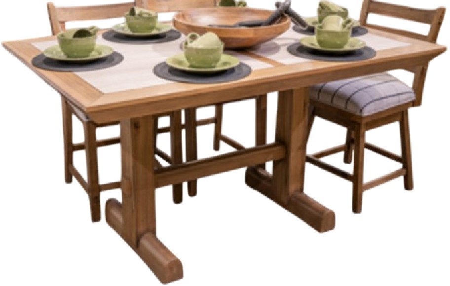 Rustic character with a dash of refinement. Outfitted with stunning hickory veneer and a natural finish, this counter height dining table celebrates the authentic beauty of wood. A stylish trestle base lends a classically chic feel to the look. Loaded with charm, it completes your dining space with modern farmhouse flair.Read More