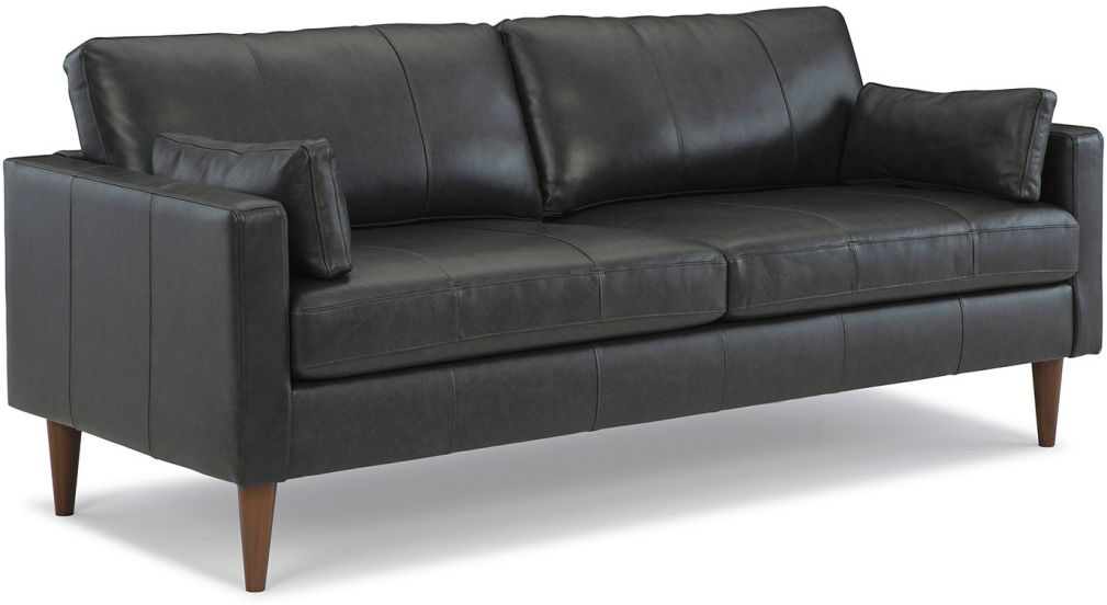 The inviting vintage style of the Trafton Sofa will provide a fresh, yet classic appeal to make a statement in any space. Loose back and reversible seat cushions are framed by sleek track arms standing atop beautifully finished tapered wood legs available in several different finish options.This collection is built to last and fully customizable with over 700 fabric options and select top grain leather choices to create something truly unique. Two pillows come in fabric of choice or same leather for leather sofas.