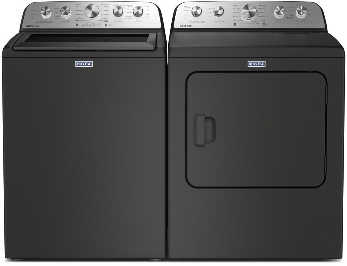 Maytag® Volcano Black Top Load Laundry Pair with a 5.5 Cu Ft. Impeller Top Load Washer and 7 Cu. Ft. Electric Dryer.Read More