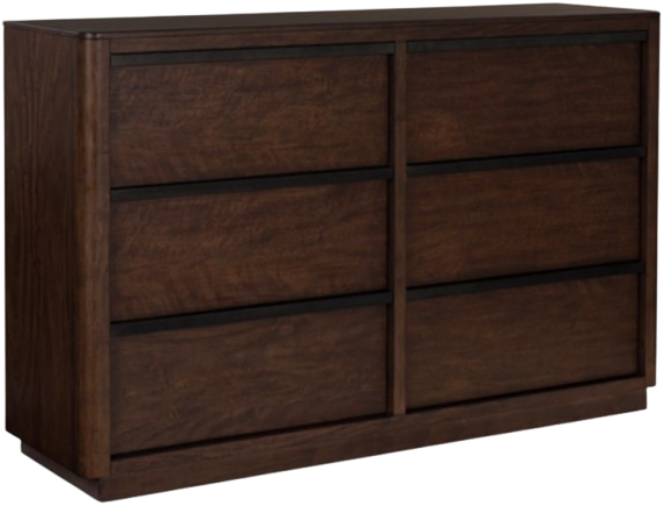 Casual contemporary styling with a decidedly modern vibe. This dresser is warm and inviting with a rich dark brown finish, adorning your restful retreat with on-trend elegance. Full-length metal pulls in a matte black finish add a subtly cool touch to spacious storage drawers.Read More