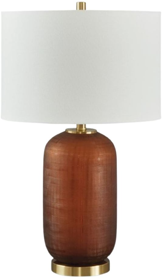 Clearly a contemporary choice. This table lamp wows with understated elegance, thanks to its rich amber-hued glass base enhanced with goldtone accents. Whether your decor is modern or eclectic, you'll love how it lightens the mood and brightens a space.Read More