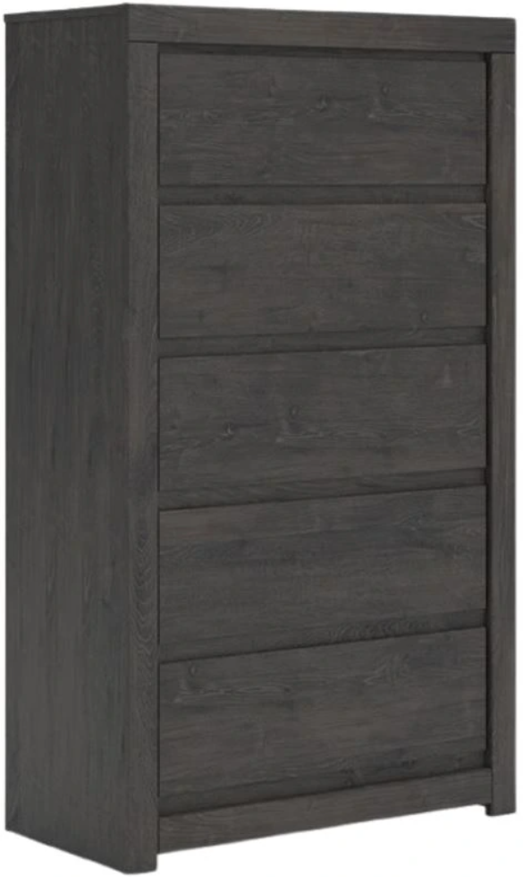 Find serene simplicity in the clean lines and dark neutral tones of this chest of drawers. It’s a sincere approach to modern elegance, giving you high style at a great value. A sleek hardware-less design creates a fuss-free look. This chest's smooth-gliding drawers keep clothes and clutter neatly tucked away.Read More