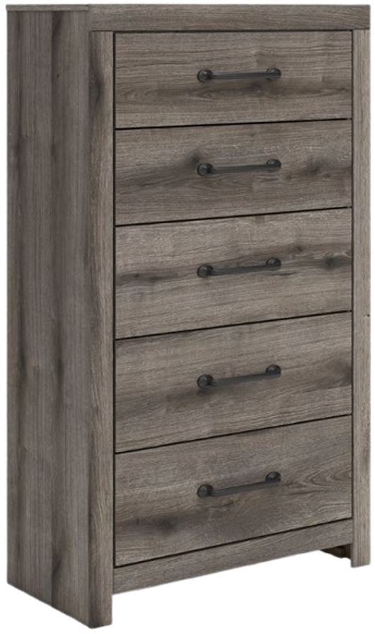 Combining a casual aesthetic with functional flair, this Graystorm Chest suits styles from rustic to industrial. Its smooth-gliding drawers store everyday essentials with ease, from clothes to bed linens. Elongated drawer pulls in a dark hue polish off the look, harmonizing beautifully with the weathered gray wood grain.Read More
