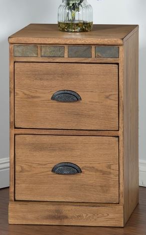 Sunny Design Sedona File Cabinet offers two drawers, slate inserts and pull handles. Place this desk inside any office area.